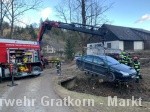 Der PKW wurde mittels Kran wieder auf die Fahrbahn gehoben.