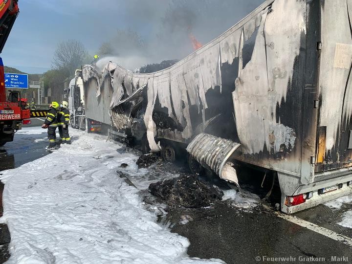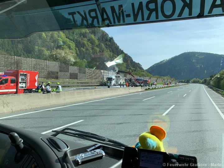 Die Feuerwehr Gratkorn – Markt, wurde zu einem LKW-Brand auf der A9 alarmiert.