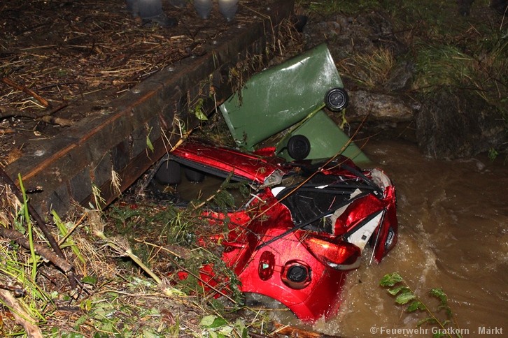 Neben dem entfernen einiger Bäume wurde von unserer Mannschaft auch ein Fahrzeug, welches unter einer Brücke steckte, geborgen.
