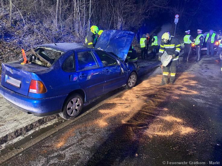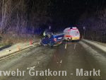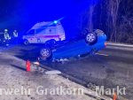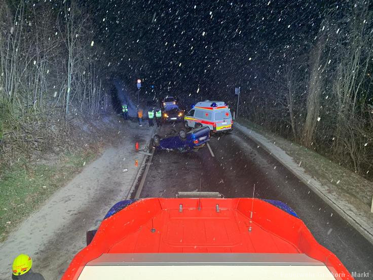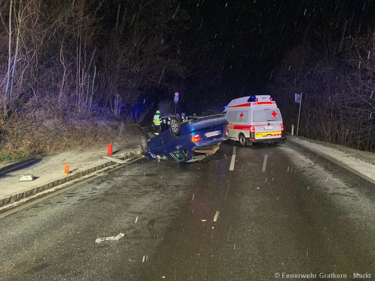 Ein PKW kam vermutlich aufgrund der Witterungsverhältnisse ins Schleudern, überschlug sich und kam anschließend am Dach zum liegen.