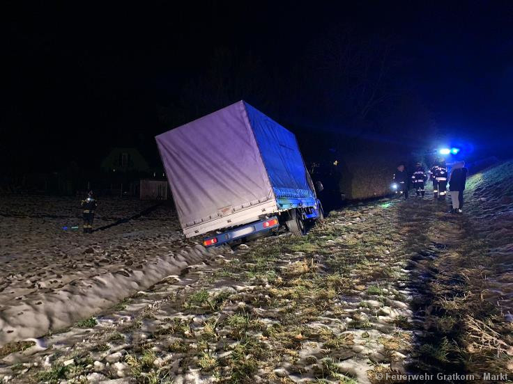 Ein Kleintransporter blieb auf einem Feldweg neben der B67 stecken. Aufgrund der Lage des Transporters konnte dieser nur durch einen Traktor der Gemeinde geborgen werden.