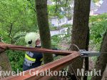 Der Baum wurde mittels Greifzug in eine sichere Position gebracht und anschließend mittels Motorsäge abgetragen.