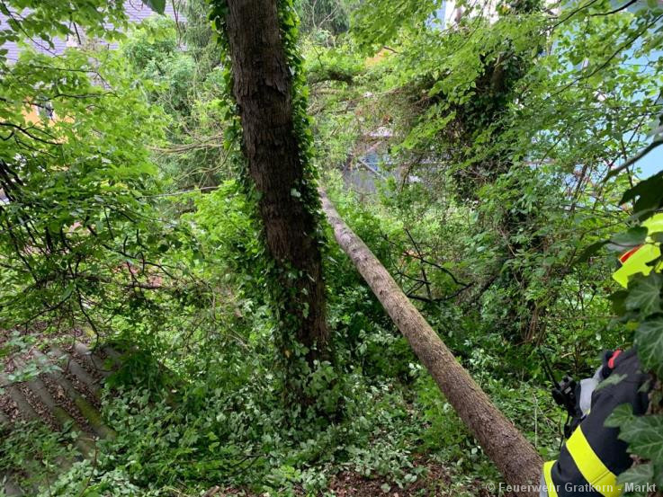 Die Feuerwehr Gratkorn – Markt wurde zu einem umgestürzten Baum in die Harter Straße alarmiert.