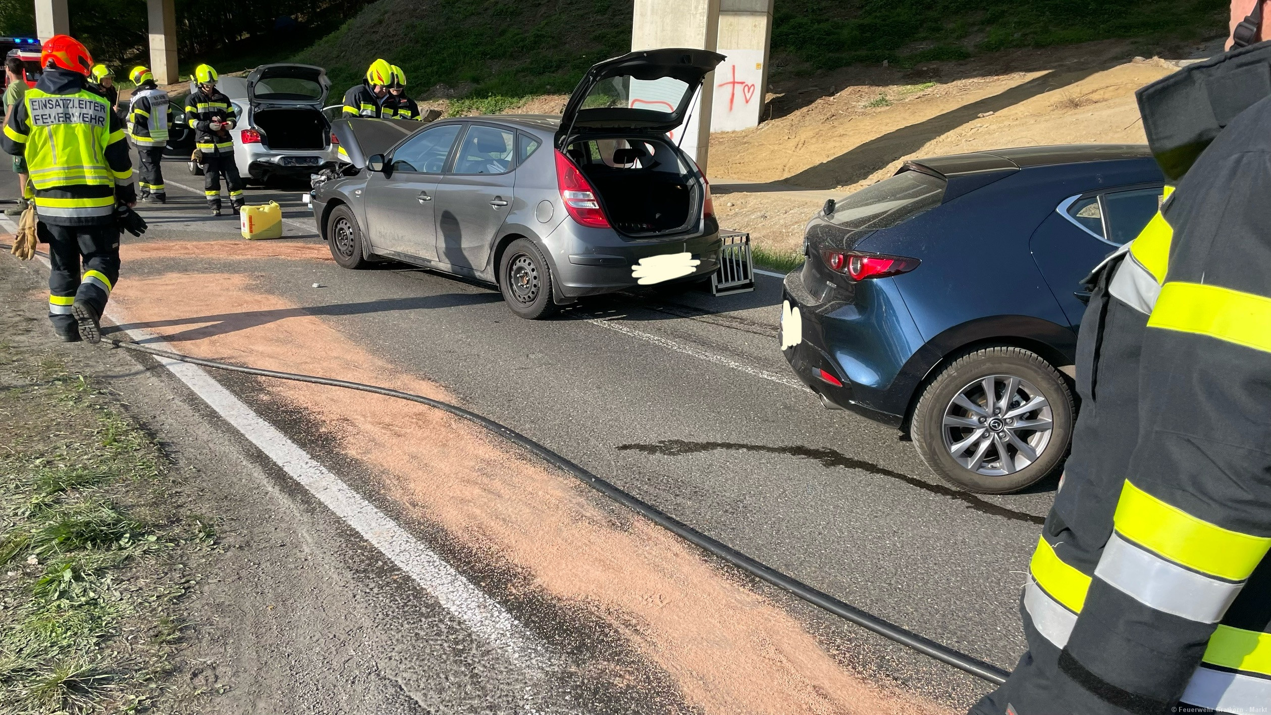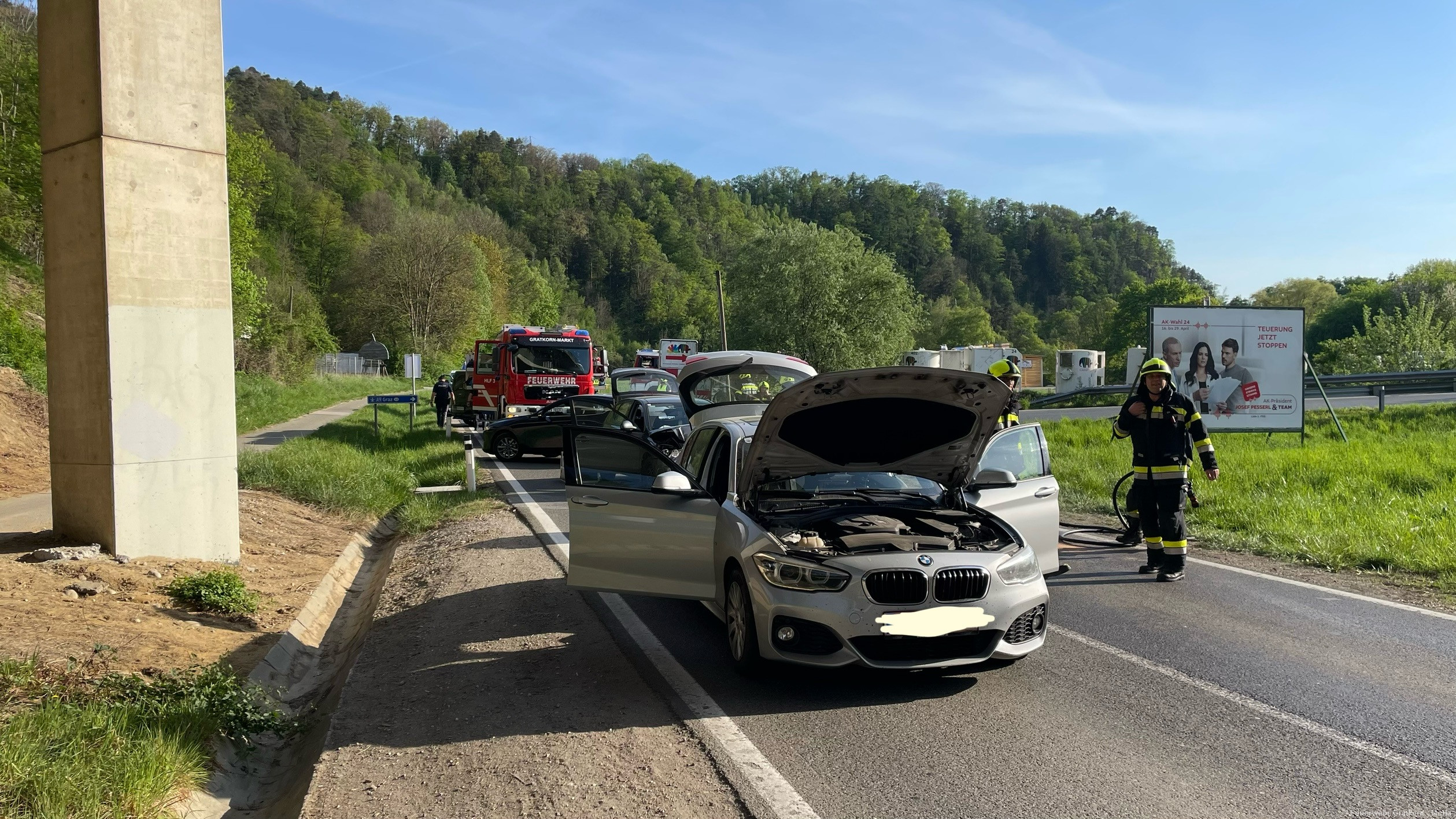 Die Freiwillige Feuerwehr Gratkorn – Markt wurde zu einem Verkehrsunfall Höhe der Autobahnauffahrt Gratkorn Nord alarmiert.