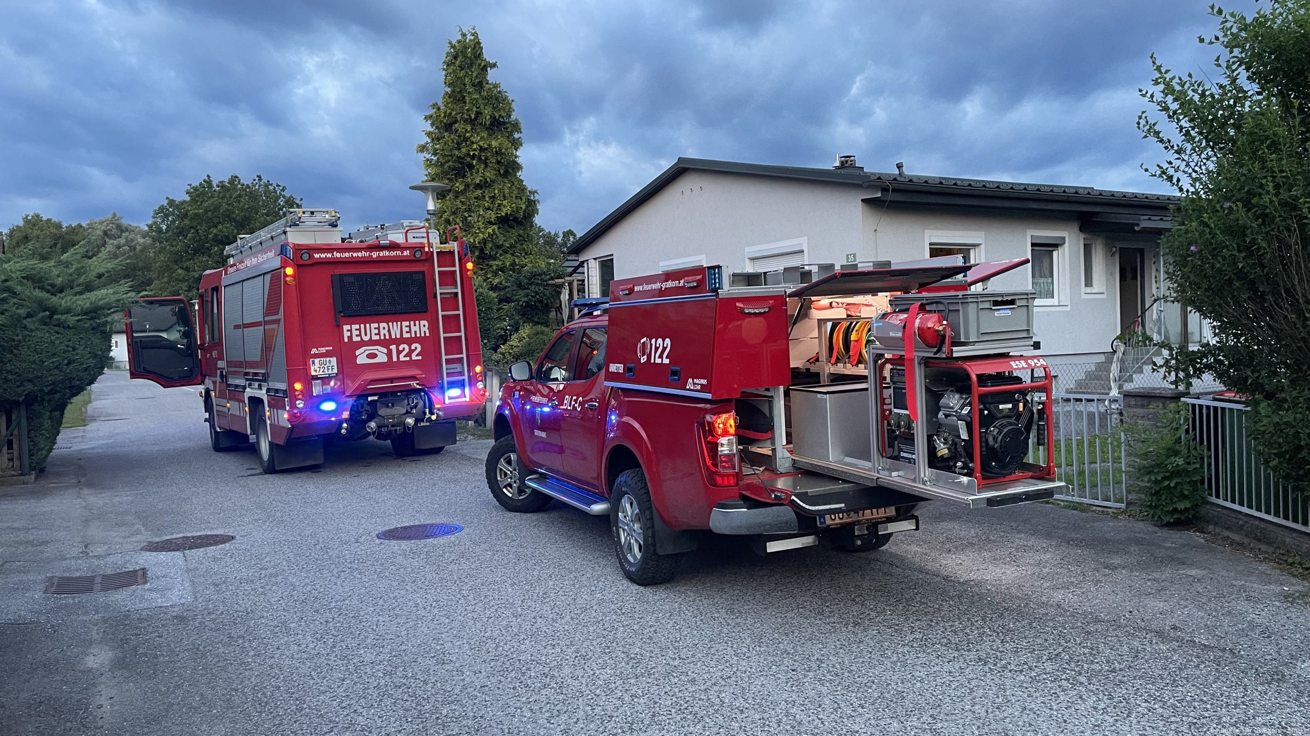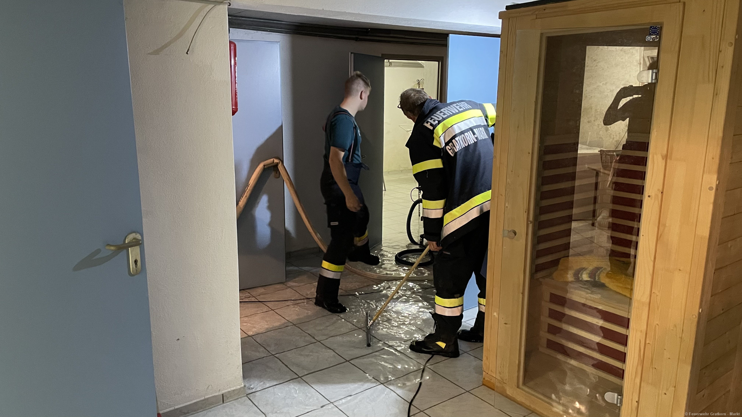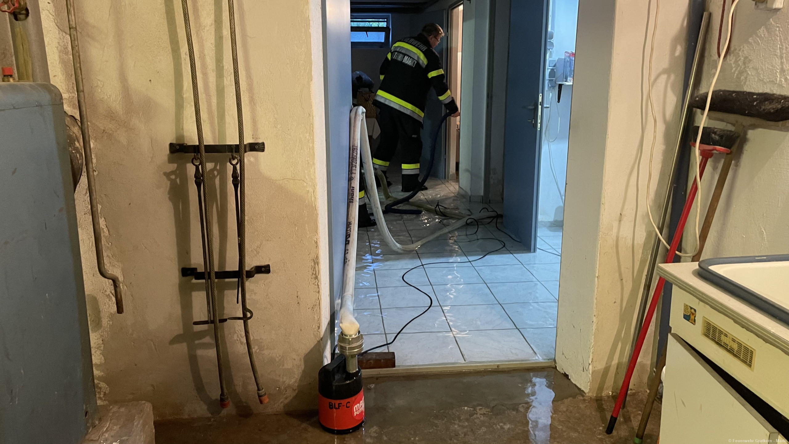 Die Freiwillige Feuerwehr Gratkorn – Markt wurde mittels Zugsalarm zu Pumparbeiten in die Hermann-Krommer-Siedlung alarmiert.