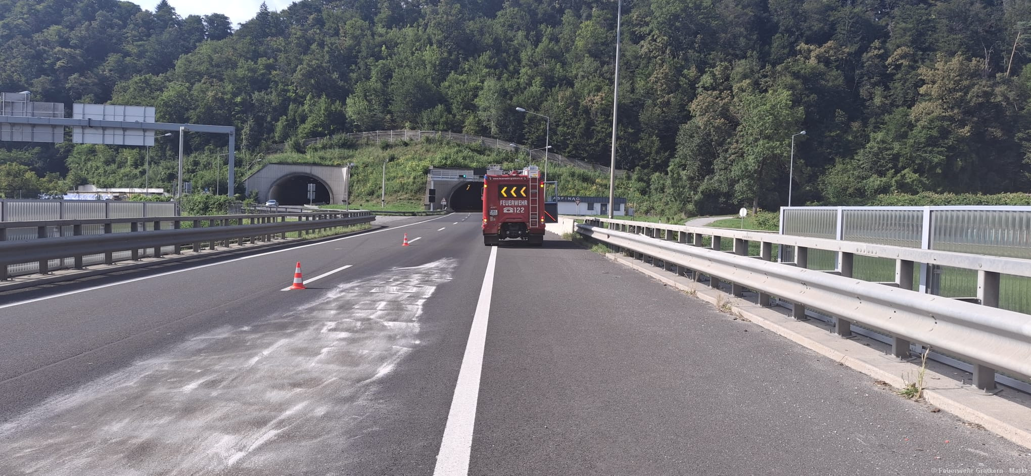 Die Freiwillige Feuerwehr Gratkorn – Markt wurde zu Bindearbeiten auf die A9 Pyhrnautobahn alarmiert.