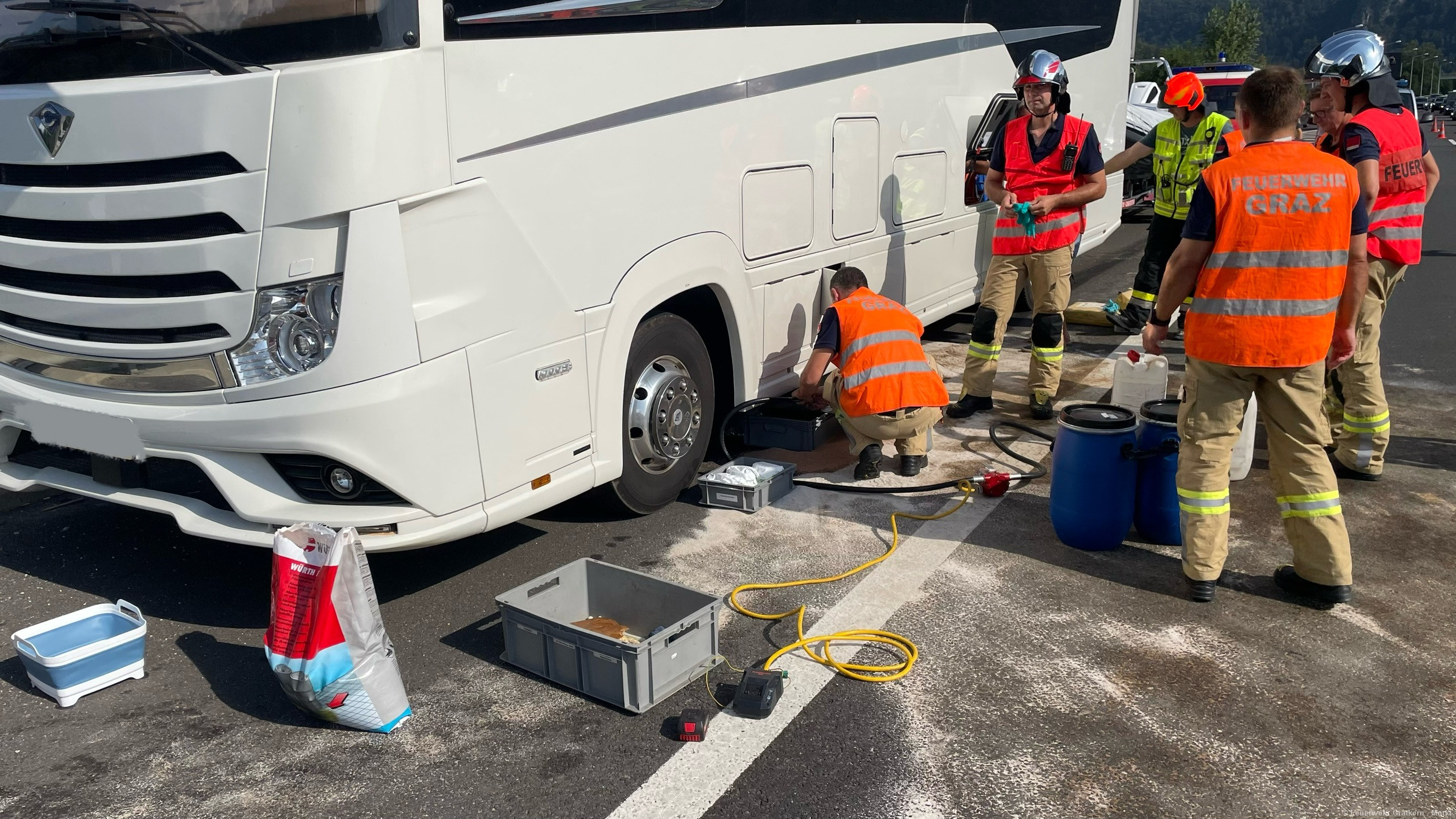 Seitens der Feuerwehr wurde der Brandschutz aufgebaut und der Diesel mittels Ölbindemittel gebunden. Weiters war die Berufsfeuerwehr Graz, als Unterstützung für das umpumpen des Kraftstoffs vor Ort.