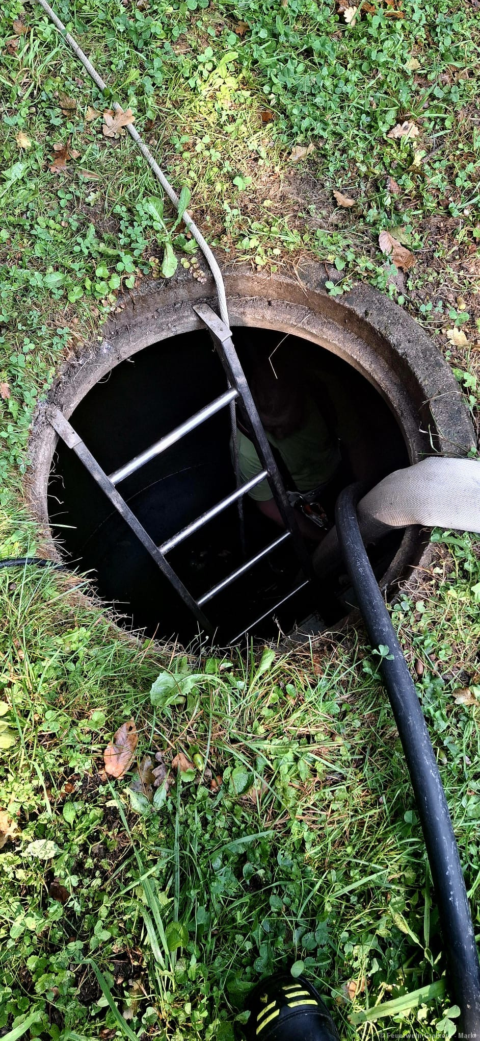 Die beiden Schächte wurden mittels Tauchpumpe ausgepumpt und anschließend mittels HD Rohr gereinigt, um den Schlamm zu entfernen. Bei der Reinigung wurde eine Schlange aus dem verstopften Schacht gerettet.