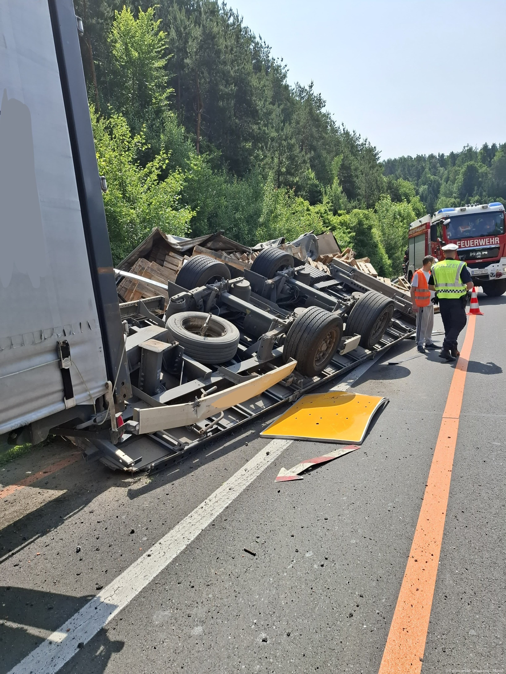 Es handelte sich um einen beladenen LKW-Anhänger, welcher umgestürzt ist.