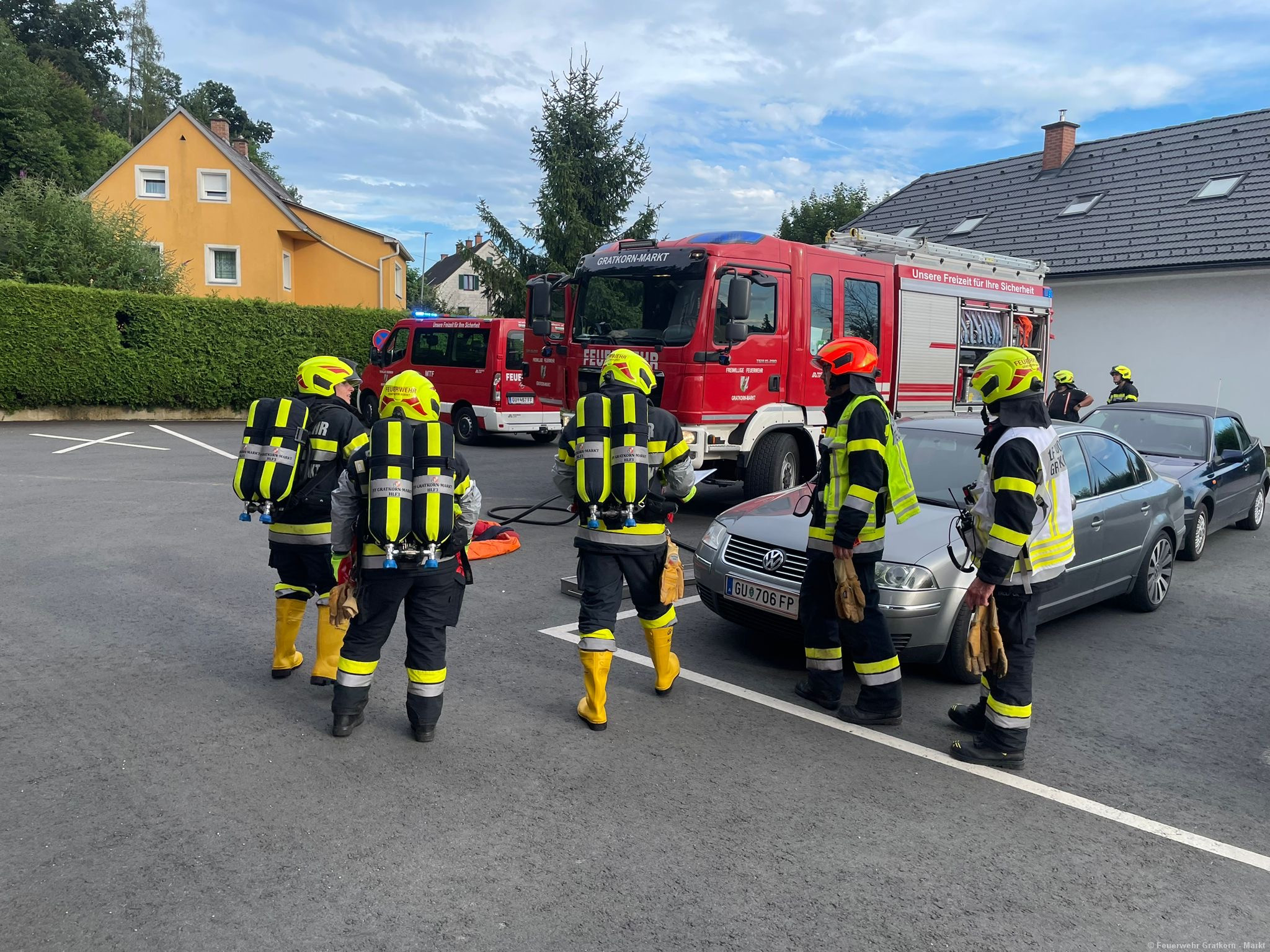 Beim Übungsszenario handelte es sich um einen Schadstoffaustritt in einer Werkstatt, wobei eine Person aus dem Gefahrenbereich gerettet werden musste.