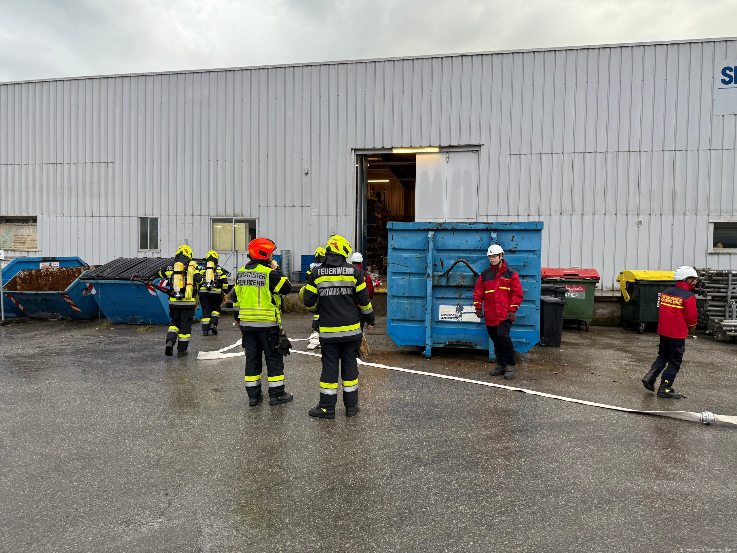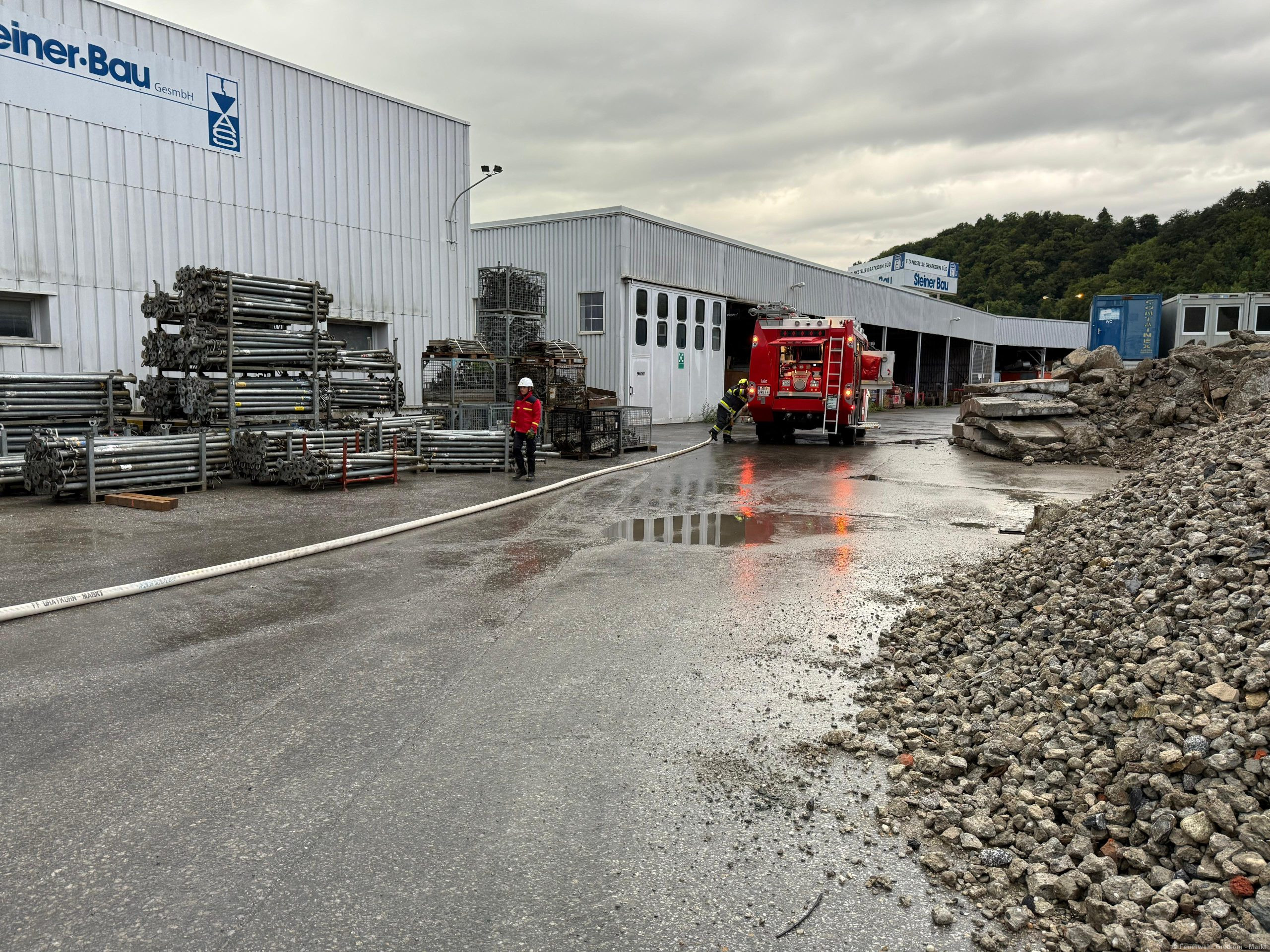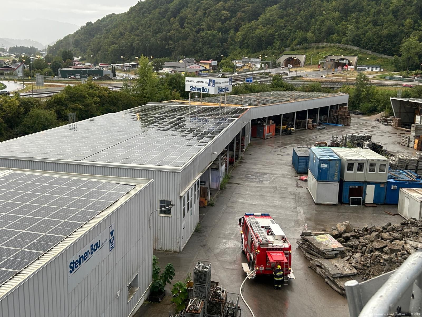 Am 05.09.2025 fand die Übung zum Photovoltaikbrand bei der Firma Steiner Bau statt.
