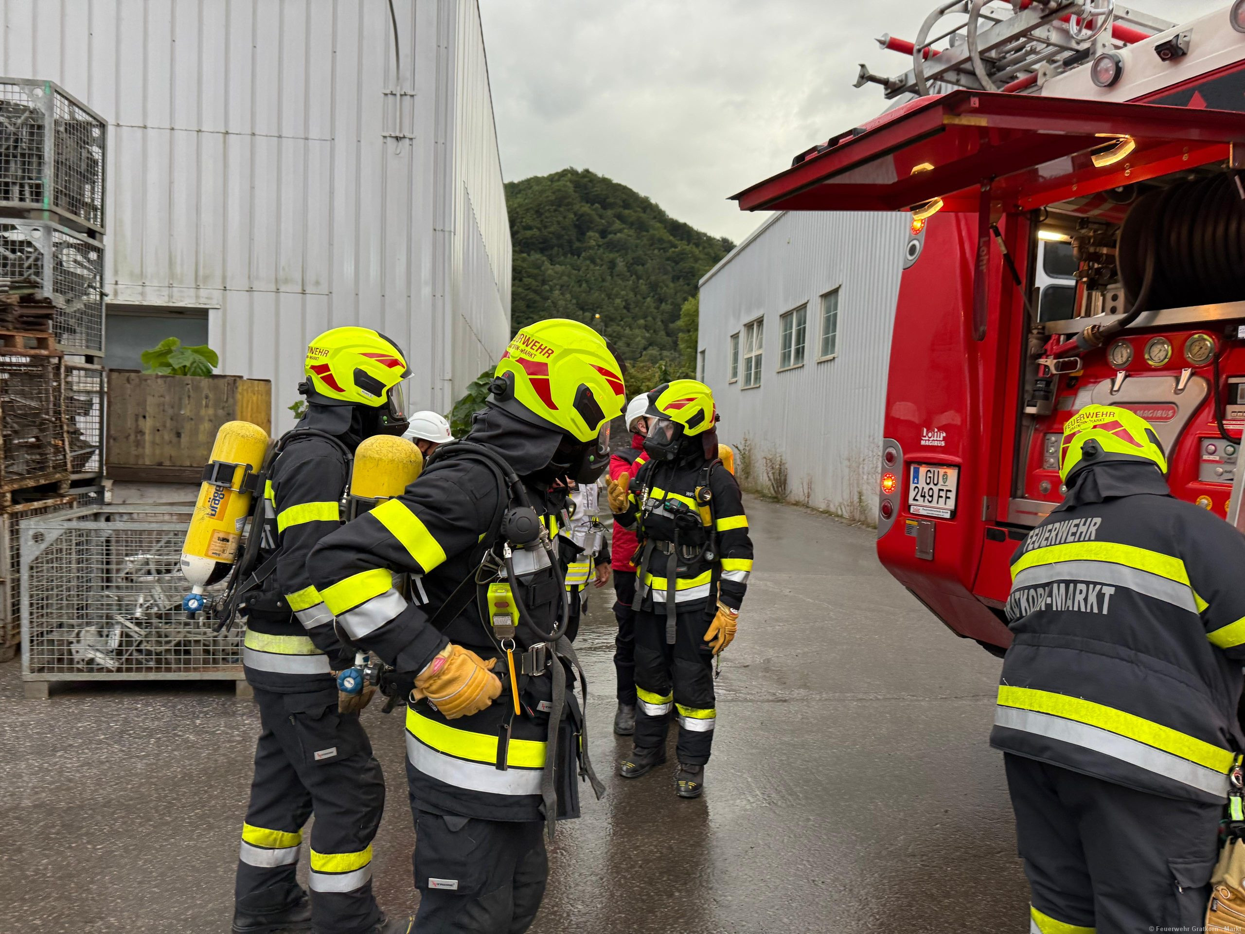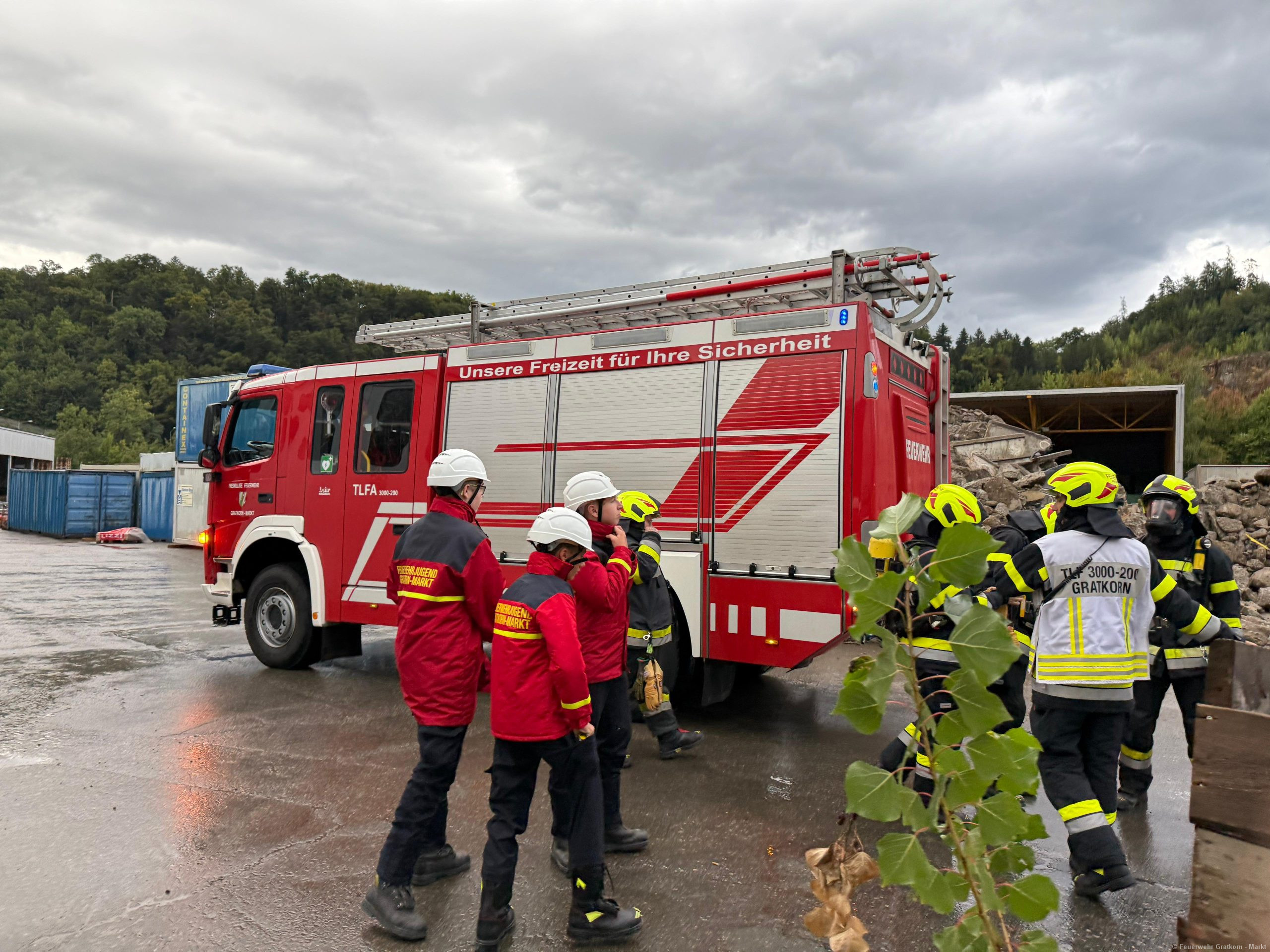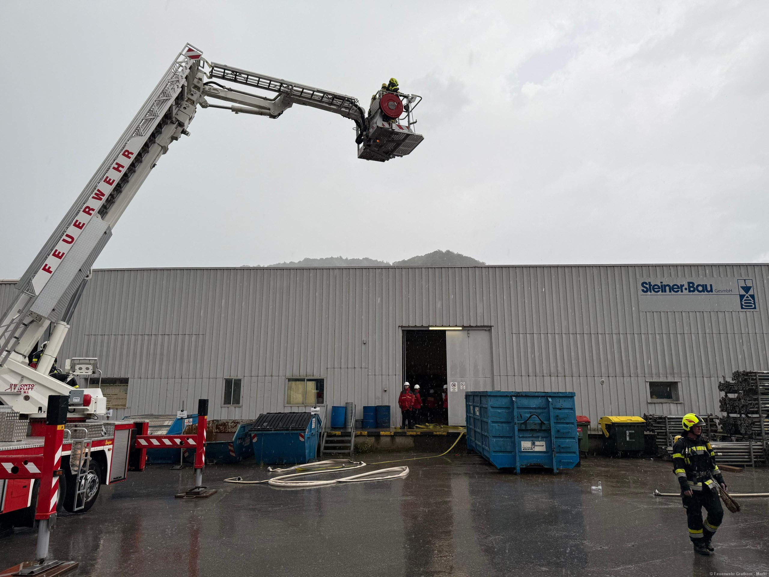 Am 05.09.2025 fand die Übung zum Photovoltaikbrand bei der Firma Steiner Bau statt.